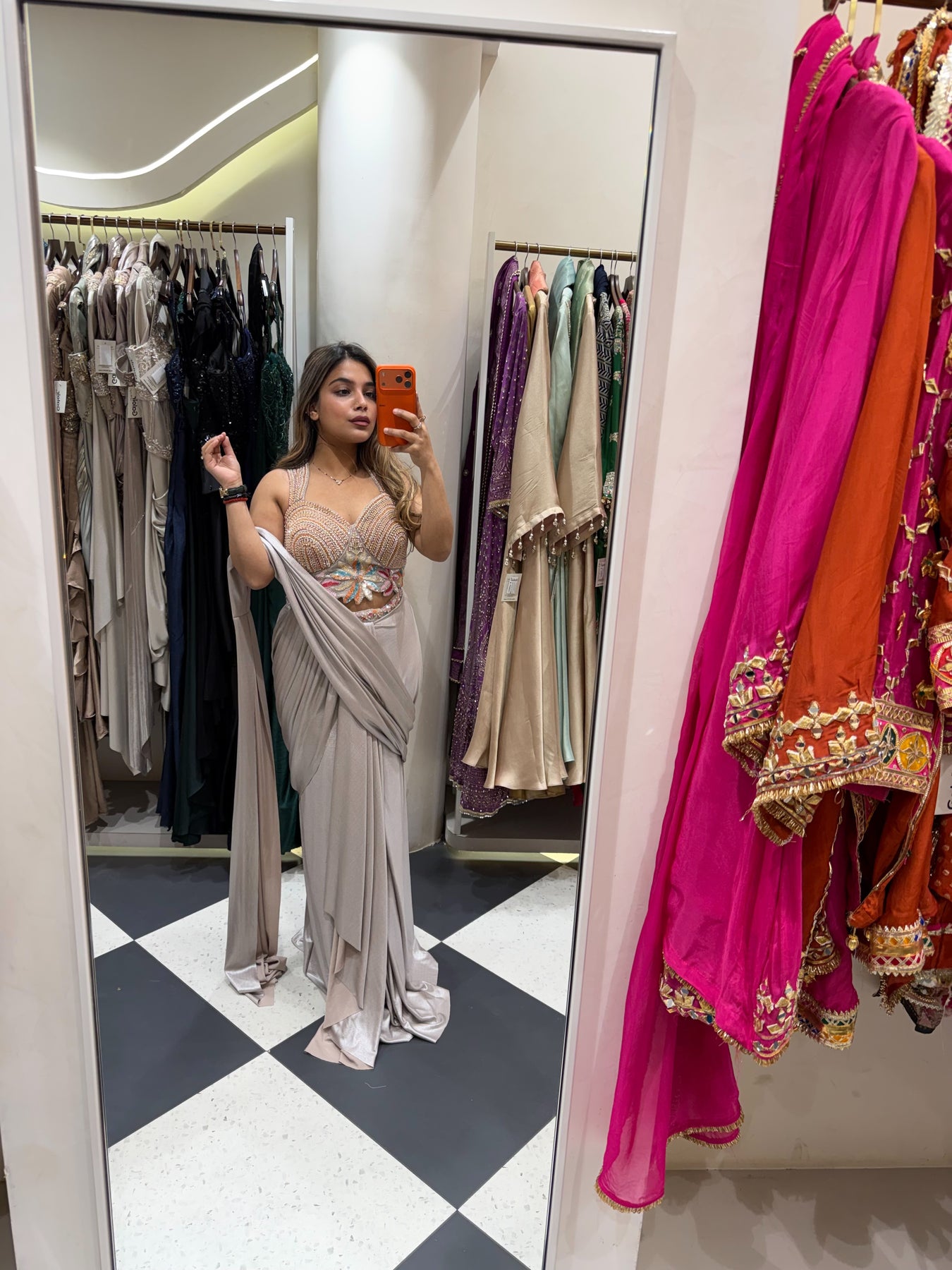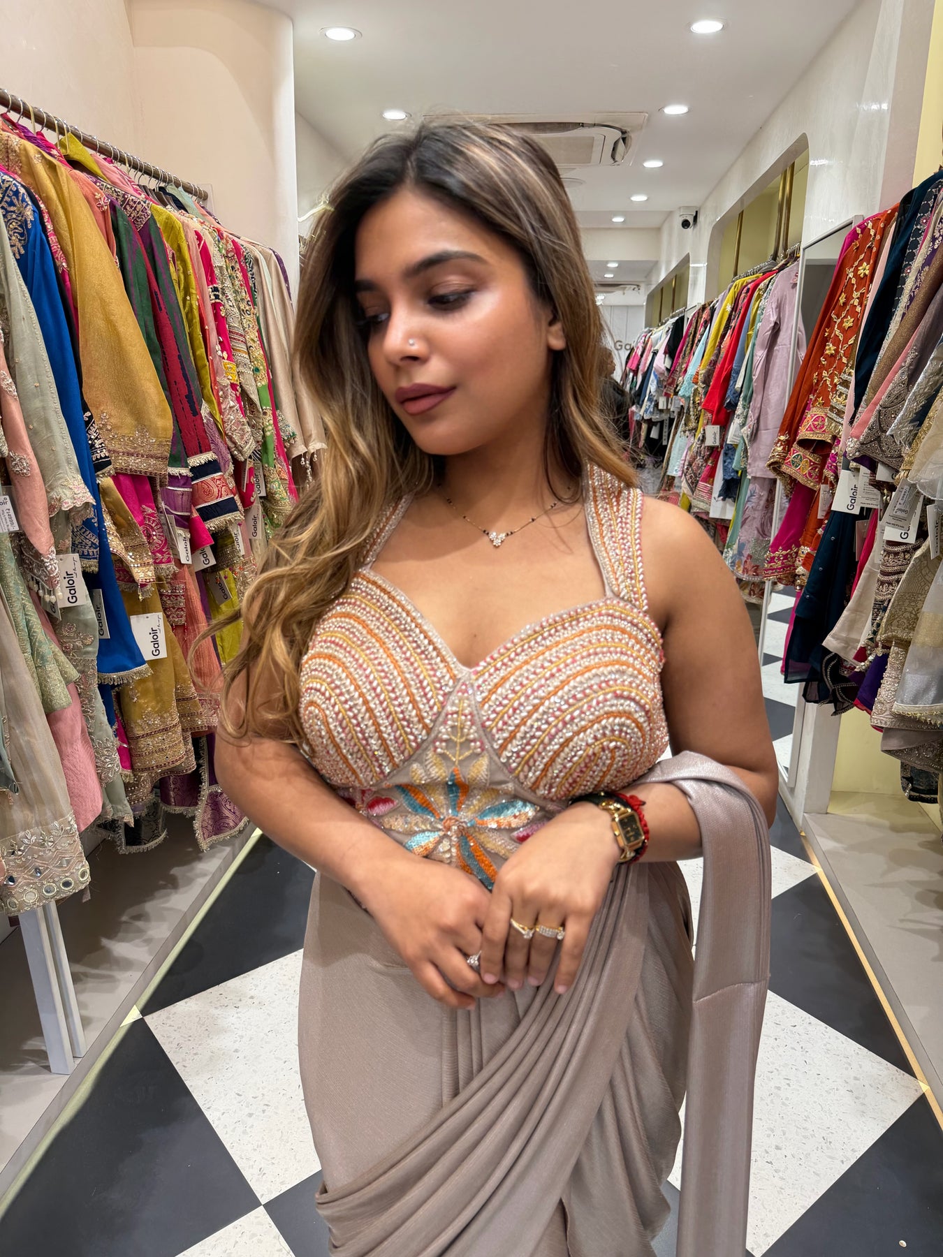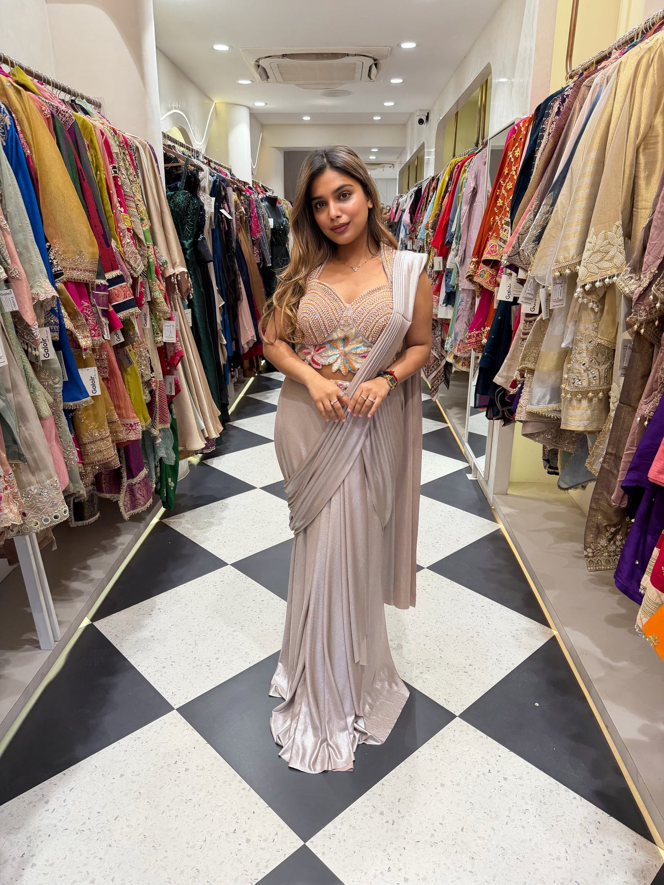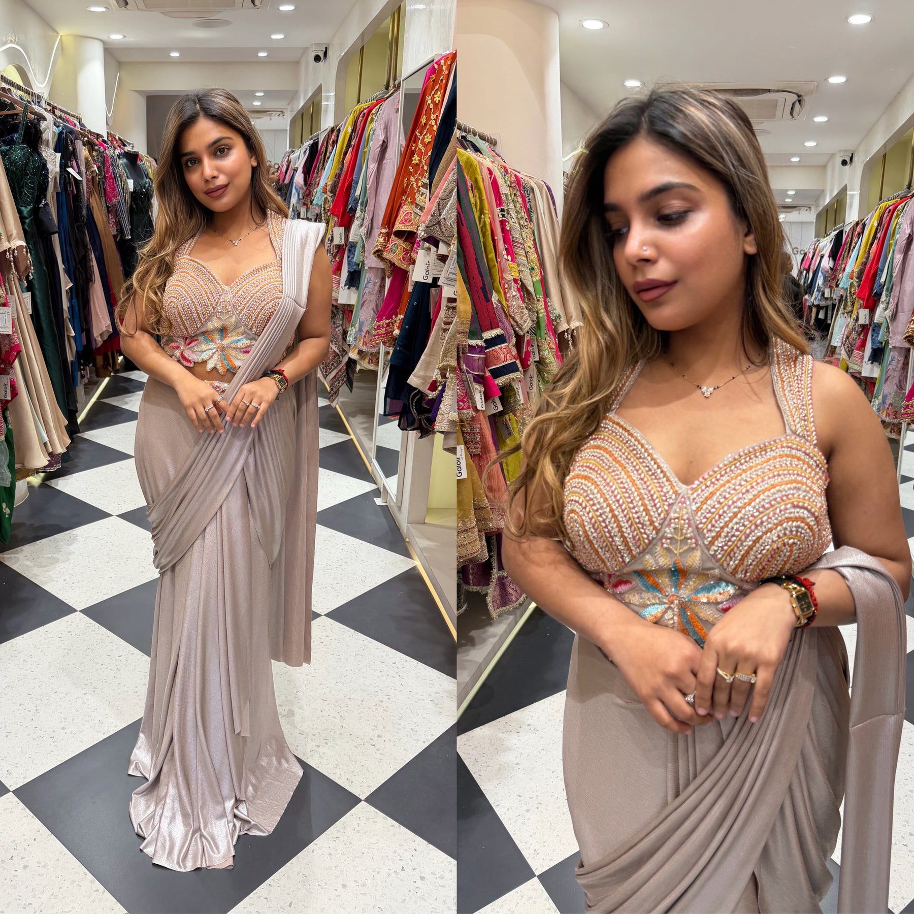 Give your Festive look a dreamy update with this beautiful Luxe drape Saree. Team these with heels or flats and shoulder bag for a look we're loving.