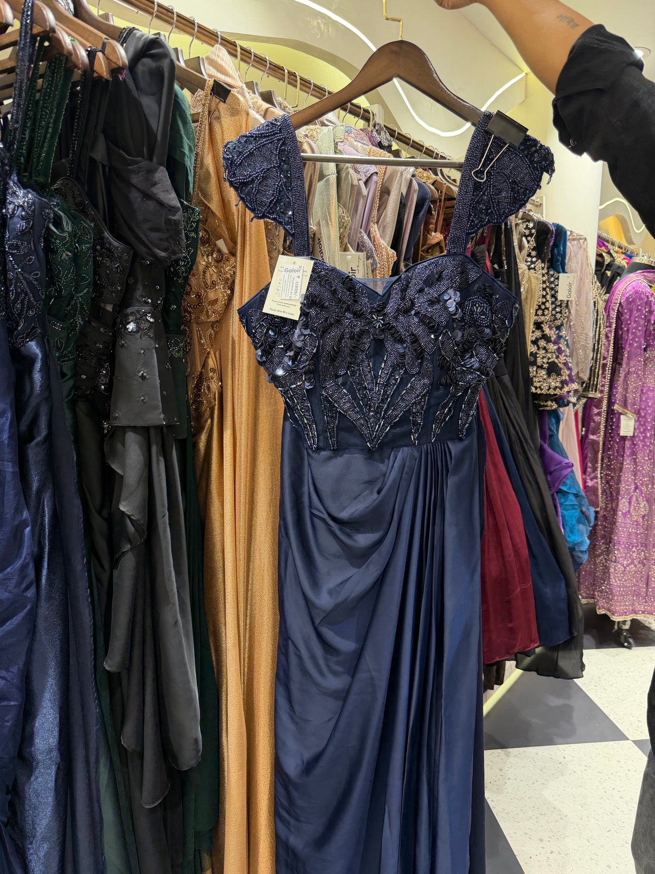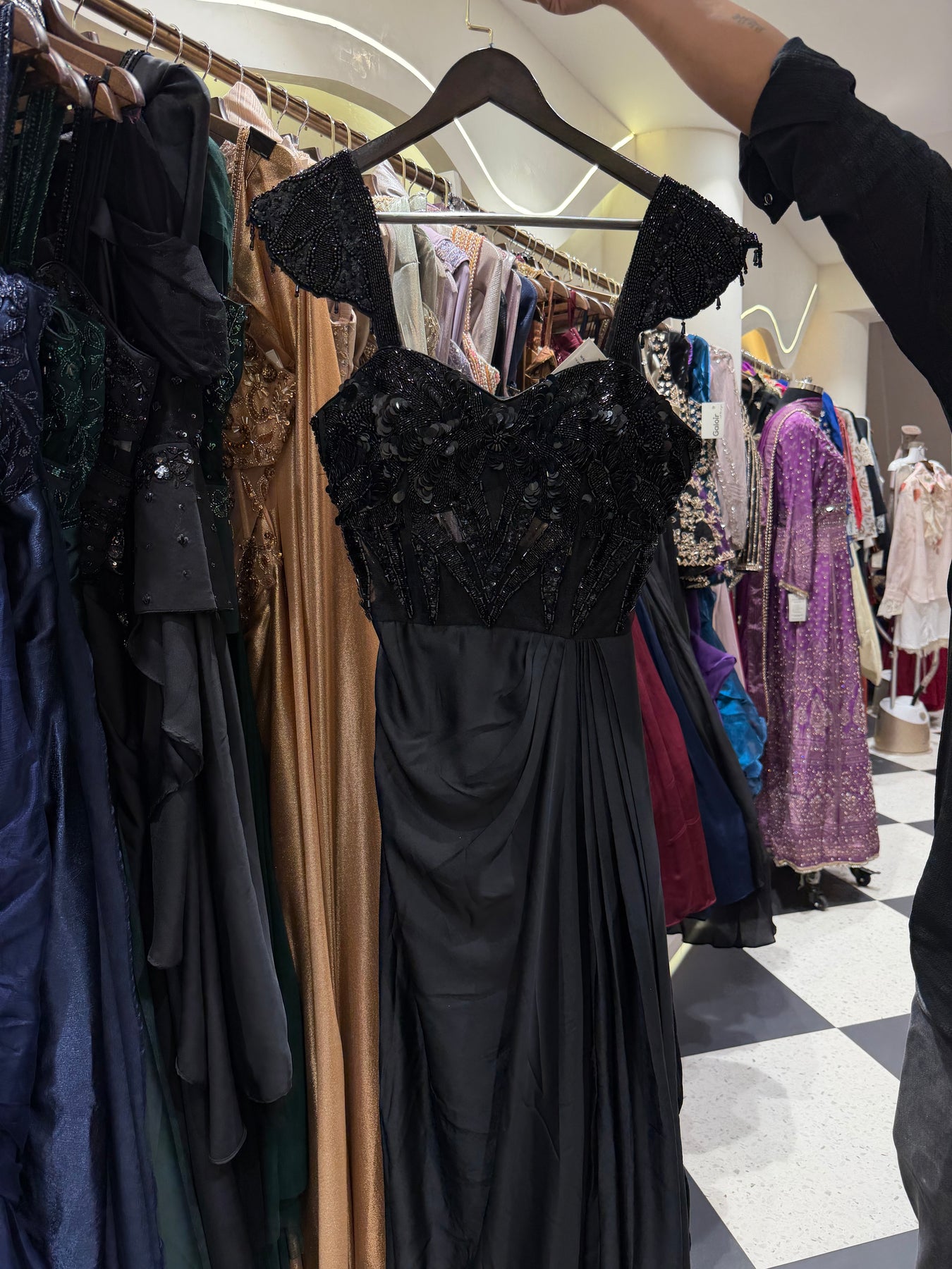 Give your Festive look a dreamy update with this beautiful Long Drape gown Team these with heels or flats and shoulder bag for a look we're loving.